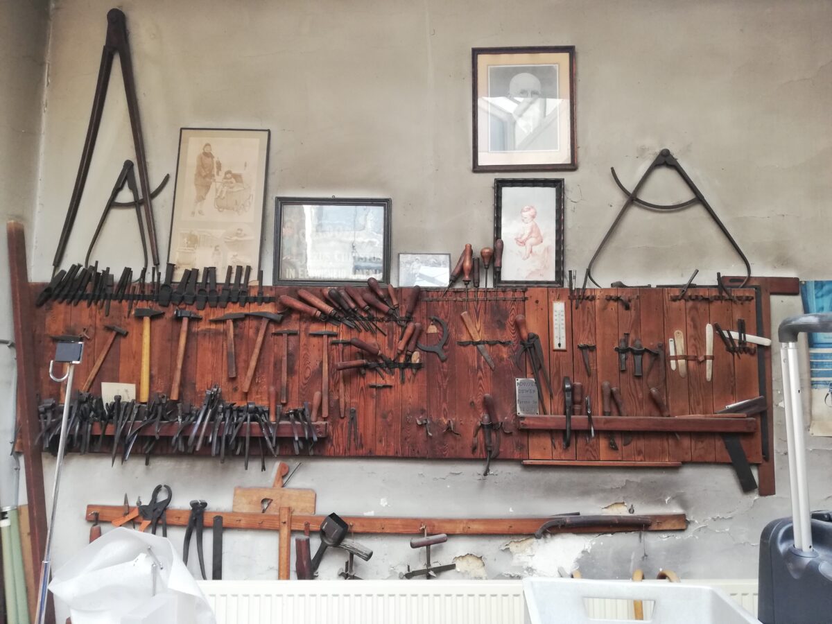 Huis Delsart combineert een winkel met oa. prachtige houten kasten, een woonhuis met fraaie lambriseringen en schouwen én een leerbewerkingsatelier met een indrukwekkend gereedschapsbord.
