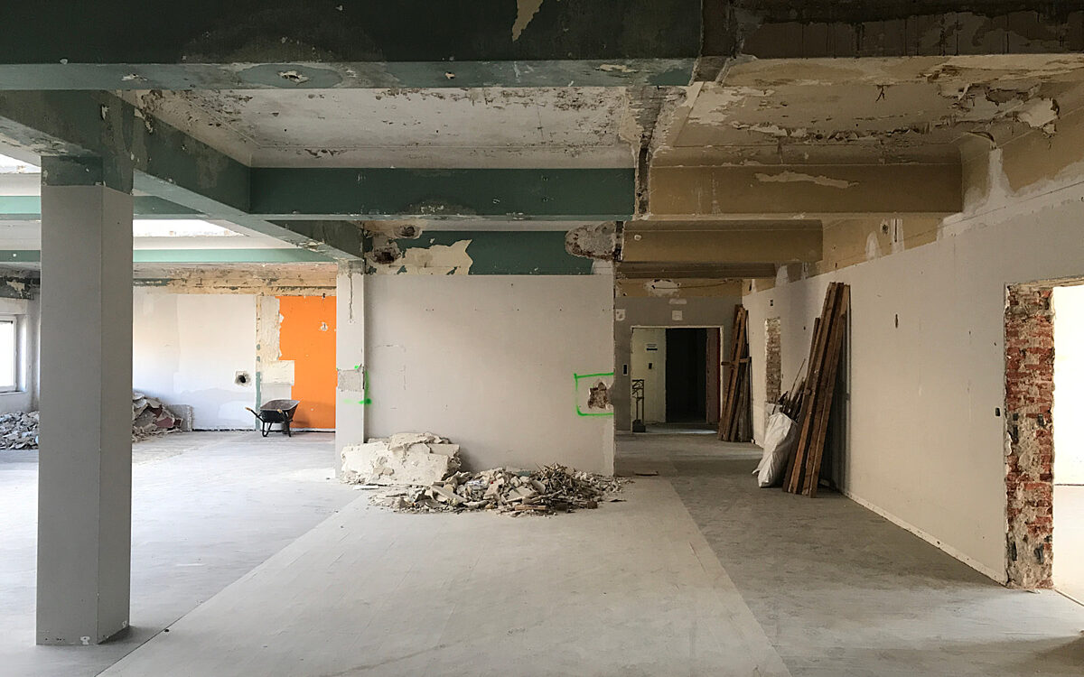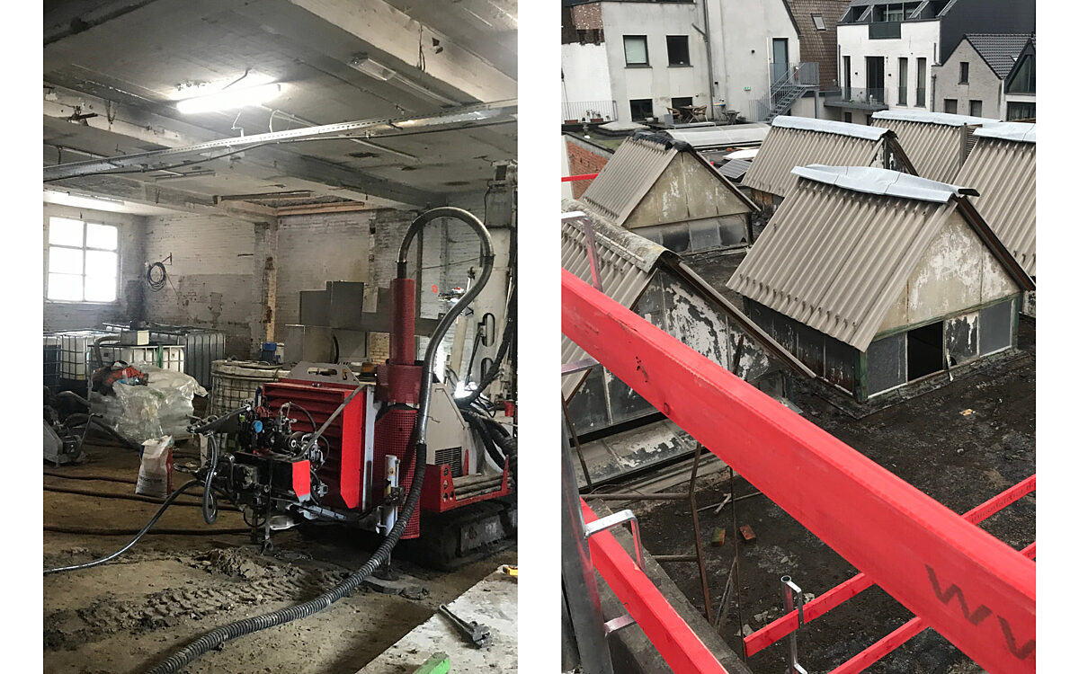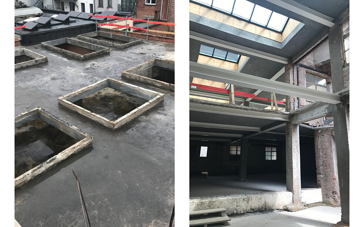 Tot en met eind 2023 werden in een voorbereidende fase reeds de instandhoudingswerken en andere niet-vergunningsplichtige ingrepen gerealiseerd, met EFRO-subsidies. En sinds begin 2025 is aannemingsbedrijf dhulst’ druk in de weer met de circulaire werf. Daarover kan je hier meer lezen in een interview met Sophie D'Hulst. De grootste uitdaging tijdens de werf is de sterke vergroeiing van de gebouwen met aanpalende eigendommen.