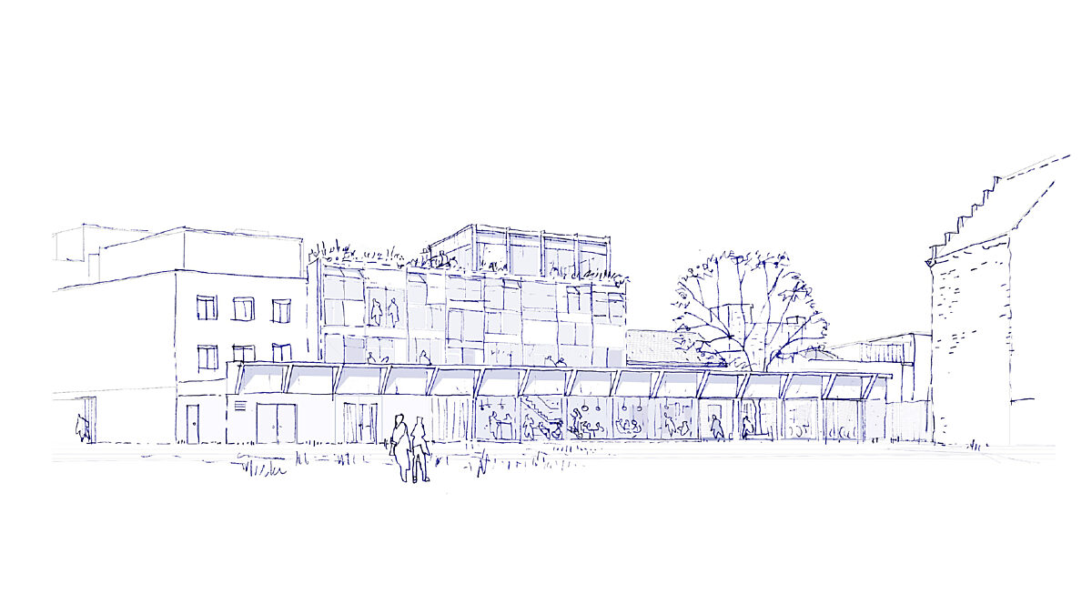 Onderstaande beelden geven een idee waar we met de plek naartoe willen. De renders, snedes en gevels werden opgemaakt door WIT architecten, Claar en Nuvilu.